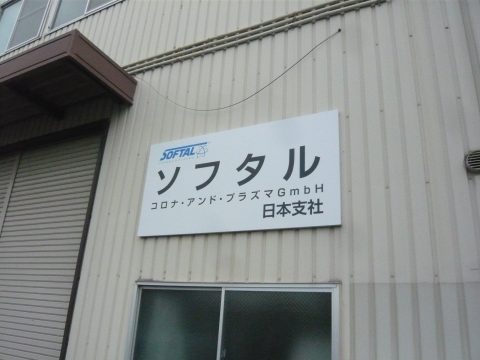 • ソフタル 壁面パネル看板の改修工事 新しいパネルを上貼りいたしました。