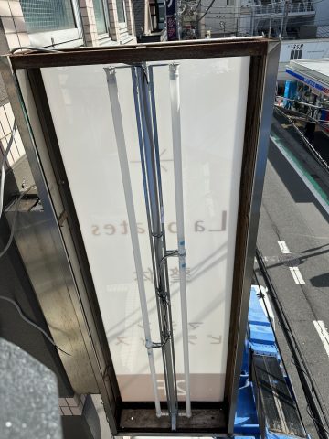 La Pilates 整体*マシンピラティス 袖看板 照明器具の交換 LED照明はお任せください。適正価格で工事します。安すぎると失敗します!
